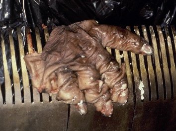 Clearly, this hand, peeled off by a dough mixer rake with every bone shattered is not replantable. A missed shoulder or elbow injury will only worsen the outlook for rehabilitation.